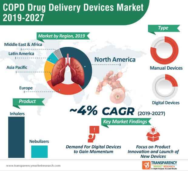 COPD drug delivery devices market is projected to expand at a CAGR of 3.8% from 2019 to 2027