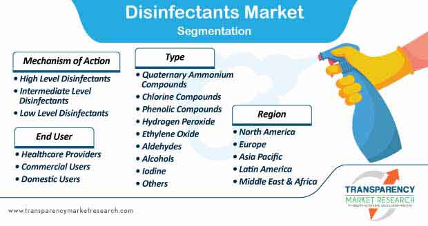 Hospital-grade eco-friendly disinfectants are growing popular in the market landscape. Analysts at the Transparency Market Research (TMR) opine that eco-friendly disinfection will pave the way for innovations in products post the COVID-19 pandemic. Manufacturers in the disinfectants market are boosting their output capacities in eco-friendly solutions that establish targeted killing of organisms without affecting the surfaces upon which they are applied.