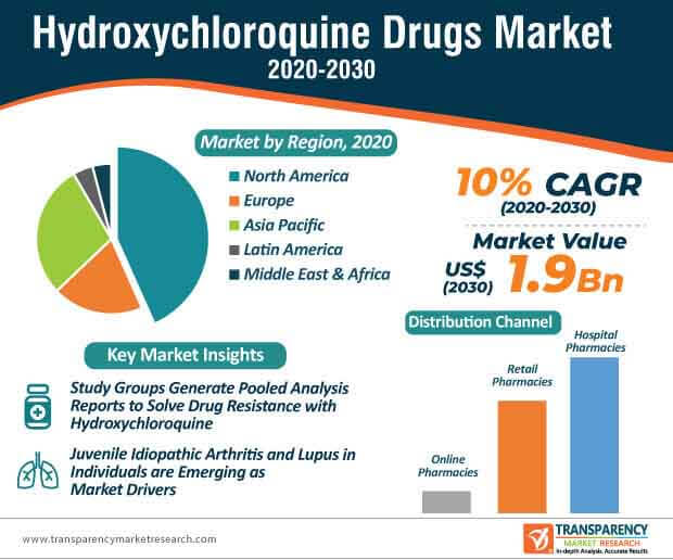 Companies in the hydroxychloroquine drugs market have increased their output capacities during the COVID-19 pandemic. However, the FDA has issued a caution against hydroxychloroquine outside of hospital settings due to the potential risk of heart rhythm problems. Juvenile idiopathic arthritis and high prevalence of lupus in individuals are boosting the growth of the hydroxychloroquine drugs market. However, issues of drug resistance are being encountered by several healthcare professionals. Hence, pharma companies are designing data visualization and mapping tools to track the spread of drug resistance. Such data is being handed over to government-led surveillance agencies to introduce high-quality drugs in the market.