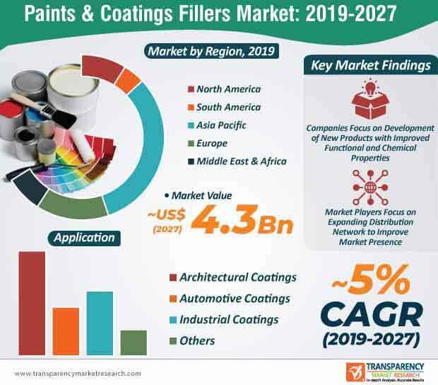 Stakeholders in the paints & coatings fillers market are entering into strategic partnerships to improve the distribution of their products. For instance, in November 2019, Omya and Kronos entered an agreement to improve the distribution of titanium dioxide pigments in Switzerland. Anticipating the growing demand for calcium carbonate, several participants in the paints & coatings fillers market are focusing on improving the production capacity of calcium carbonate in their manufacturing units. Furthermore, Asia Pacific is likely to attract significant investments in the coming years, owing to the booming industrial and architectural sectors in India, China, Indonesia, and Malaysia, among others.