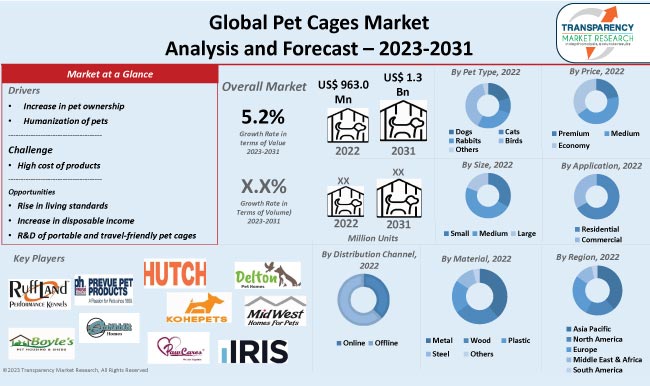 Growth in standard of living and increase in disposable income of consumers are estimated to offer lucrative opportunities to players in the global pet cages industry. Vendors are investing significantly in R&D of portable and travel-friendly pet cages to expand their customer base. They are also offering diverse cage designs and options to increase their pet cages market share.
