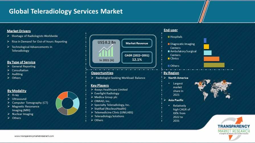 The global teleradiology services market was valued at US$ 8.2 Bn in 2021